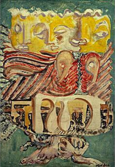 En 1942, il se lance dans une série de tableaux sur la tragédie grecque. En plus des grandes thématiques, il s’en inspire pour créer ses propres figures mythologiques. Ce sont des personnages hybrides, composites, homme et femme à la fois ou parent/enfant emmêlés, où le manque se donne comme manquant quand il ne réapparaît pas, par en dessous, dans un corps mutilé qui recouvre du vide.